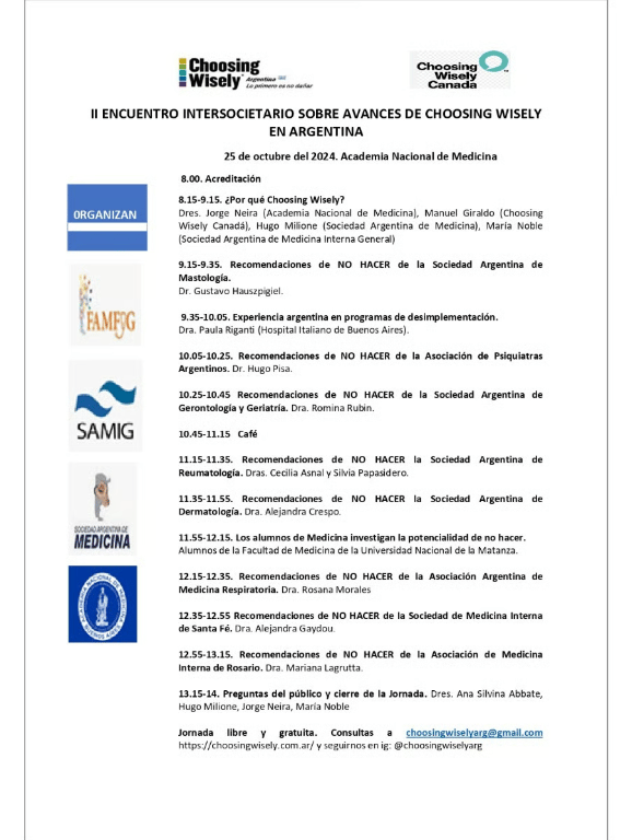 II ENCUENTRO INTERSOCIETARIO SOBRE AVANCES DE CHOOSING WISELY EN ARGENTINA.